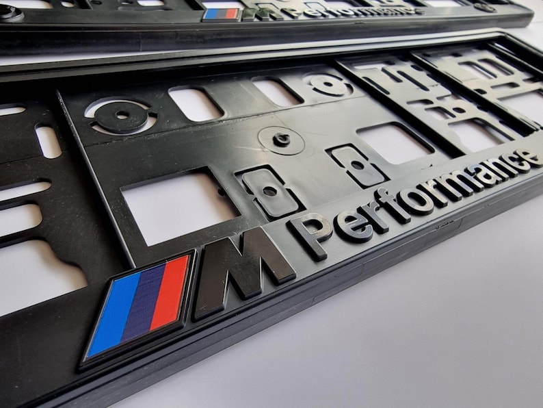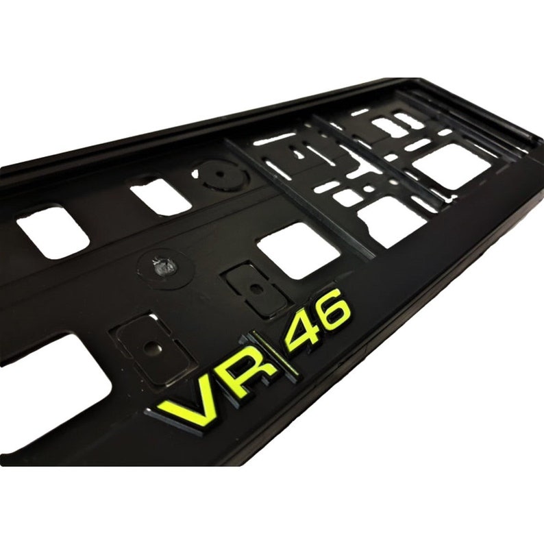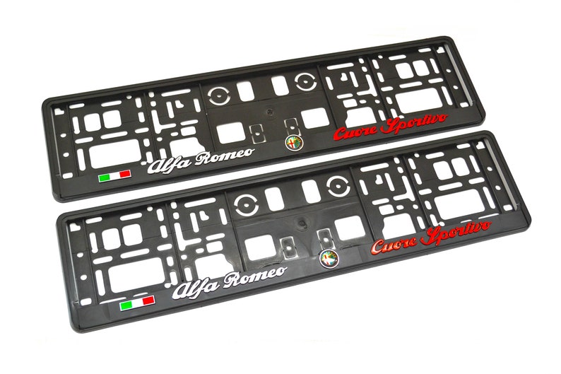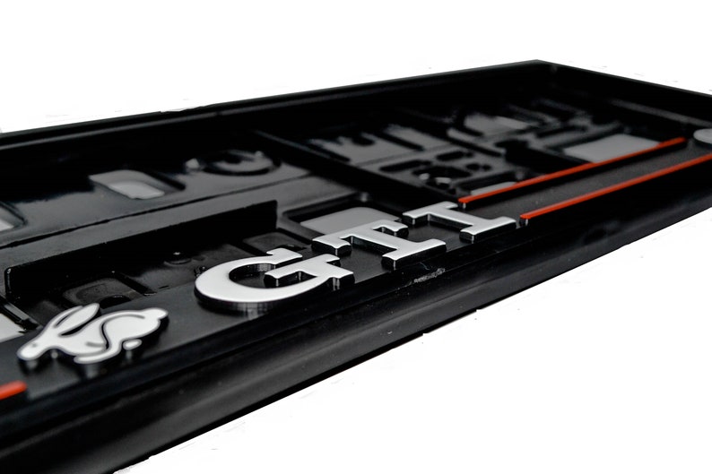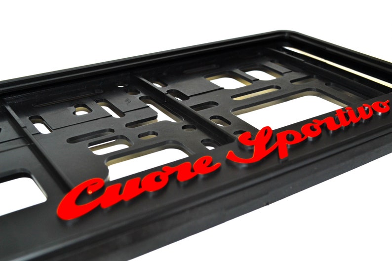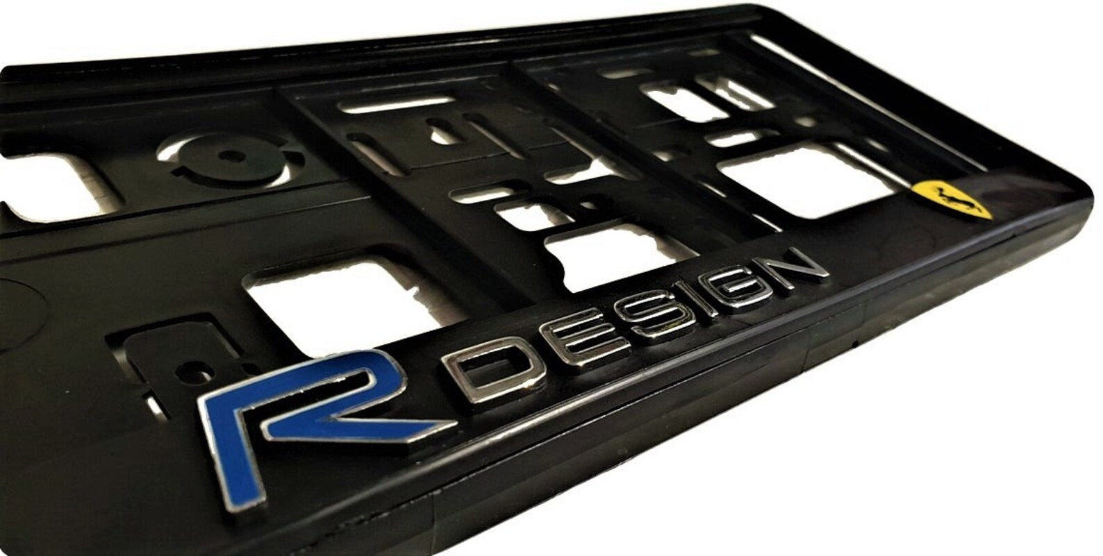זוג מסגרות עם טקסט תלת מימד ללוחית רישוי לרכב.