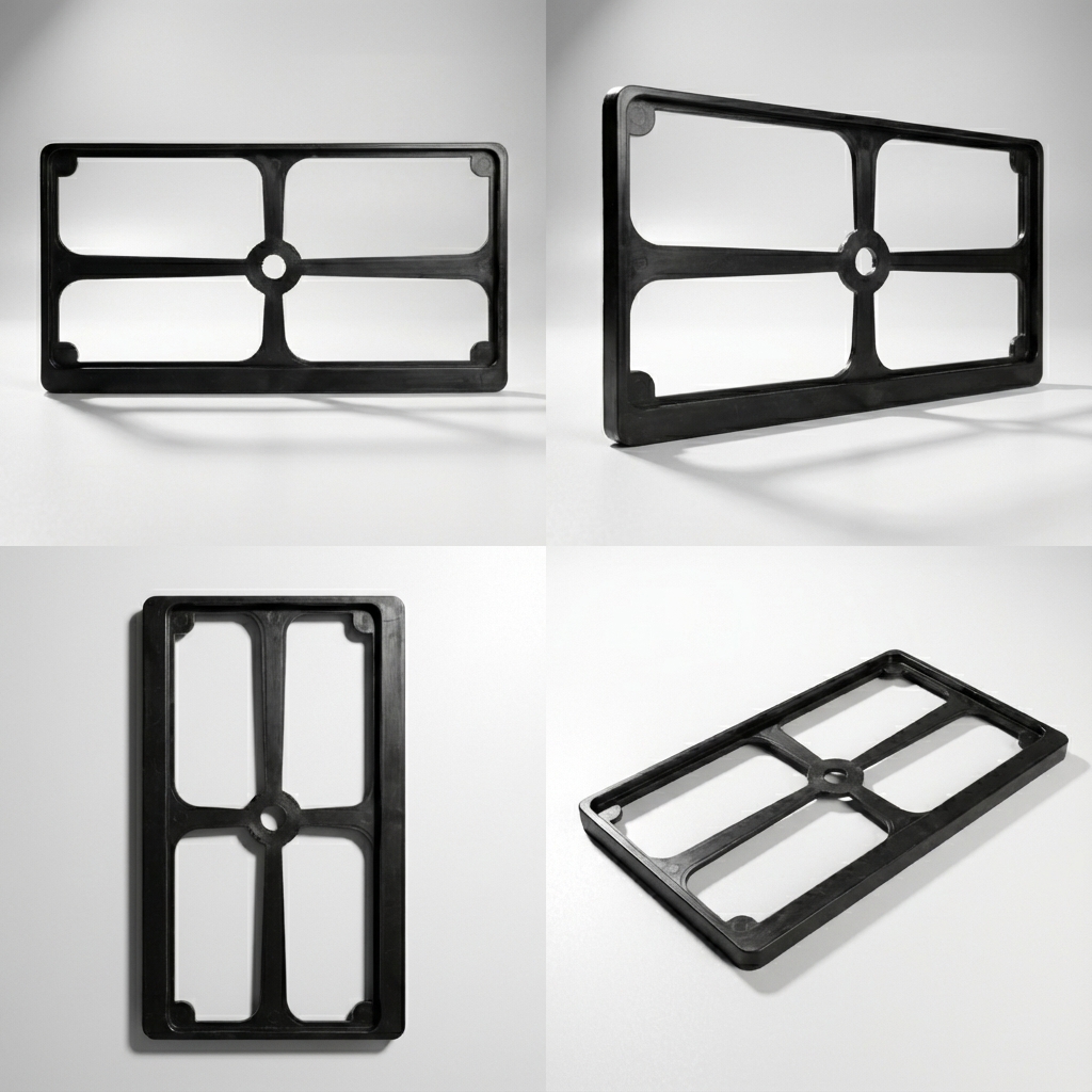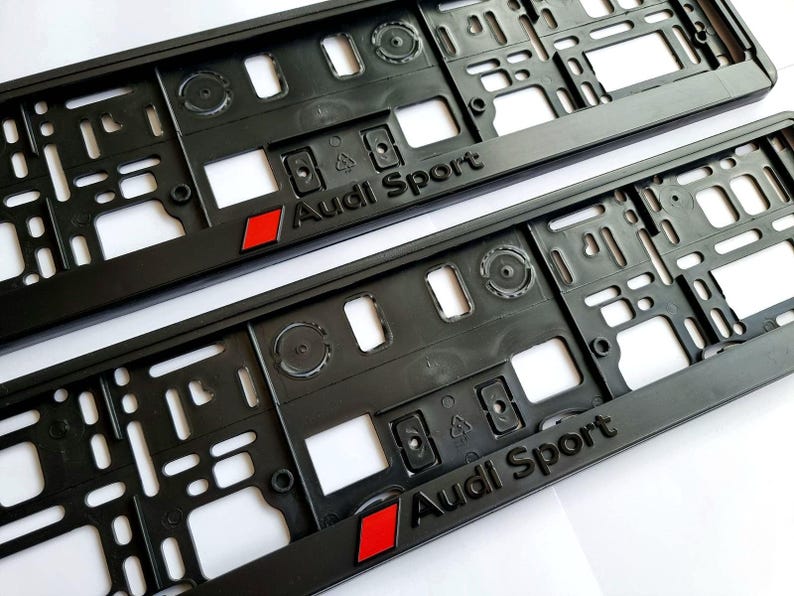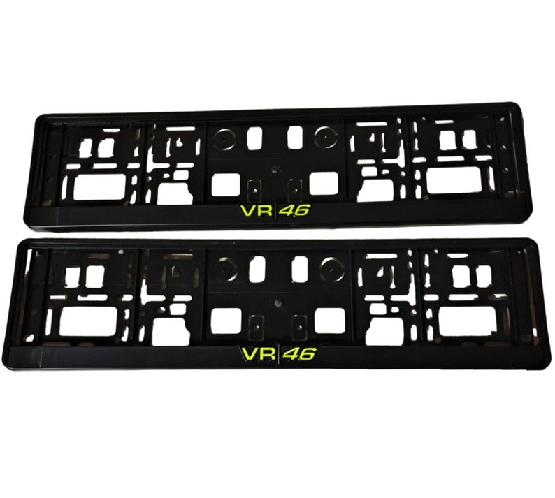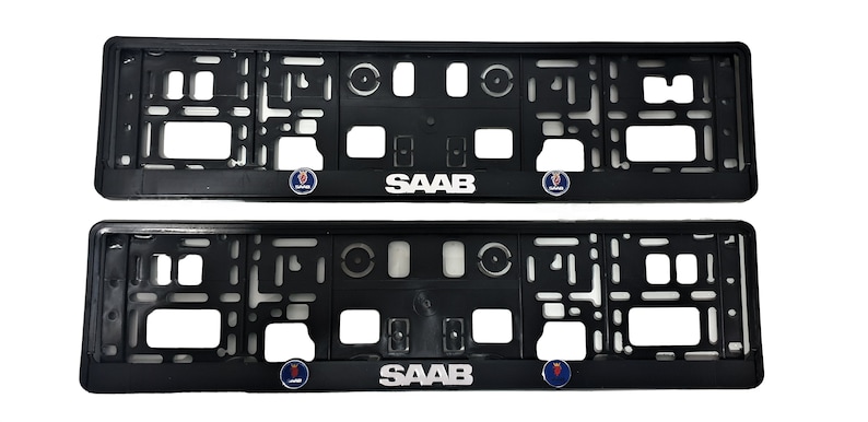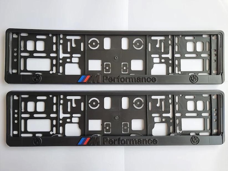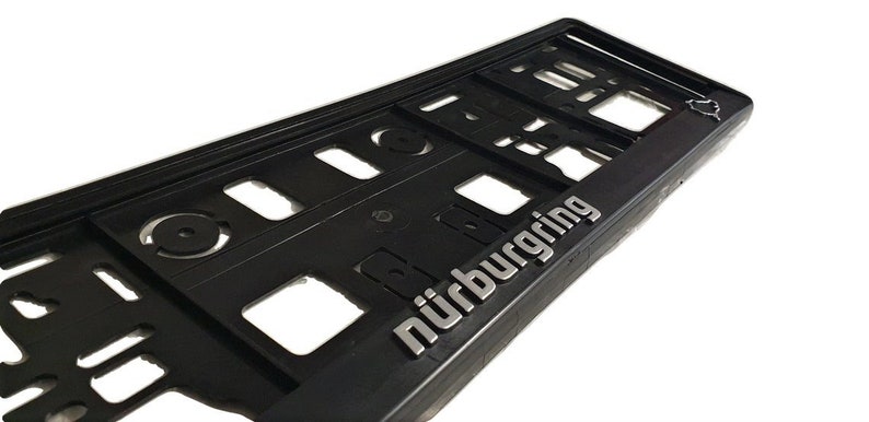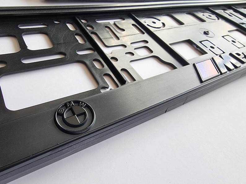 זוג מסגרות עם טקסט תלת מימד ללוחית רישוי לרכב.